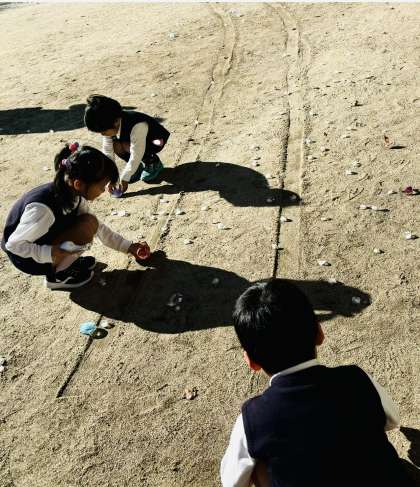 サンタさんが帰った後の園庭には、ソリ跡が残っていて、氷があちらこちらに落ちていました。とても寒いところから来てくれたからでしょうね。サンタさんありがとう。