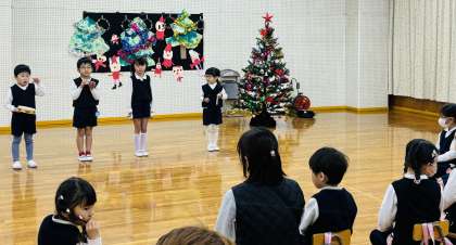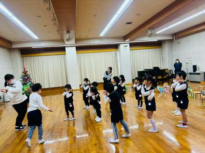 歌や楽器遊びをして楽しく過ごしていると、サンタさんが来てくれました。