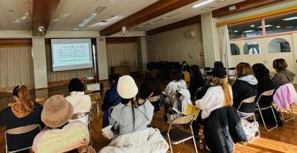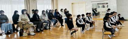始業式で、先生たちが鏡もちやお飾りの話をするのを、子どもたちは興味をもって聞いていました。