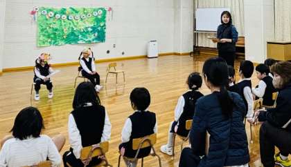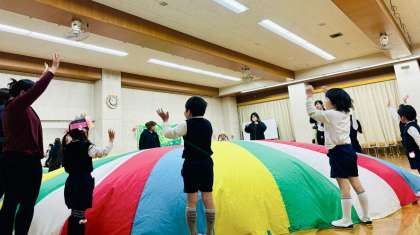 今までずっと友達のお祝いをし、自分の順番を楽しみに待っていた3月生まれの子どもたち。みんなにお祝いしてもらい、うれしくて、恥ずかしくて、ドキドキして‥。いろいろな気持ちでいっぱいだったようです。みんなの前に立っての自己紹介もがんばったね。誕生児の保護者も一緒にパラバルーンをし、おめでとうがいっぱいの誕生会でした。今年度最後の誕生会、みんな大きくなりました。