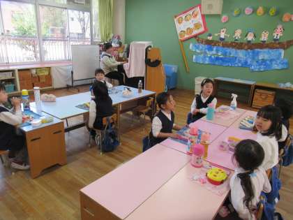 そら組保育室で弁当を食べて過ごしたり、そら組が保育証書を受け取っていた姿を真似て終業式ごっこをしたり、進級に向けた活動の中で、意欲的な姿がたくさん見られました。