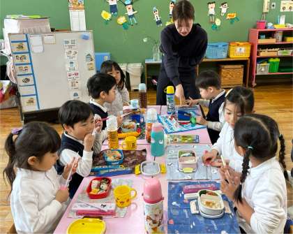 また、進級して初めてのお弁当を食べました。笑顔で会話も弾んでいました。