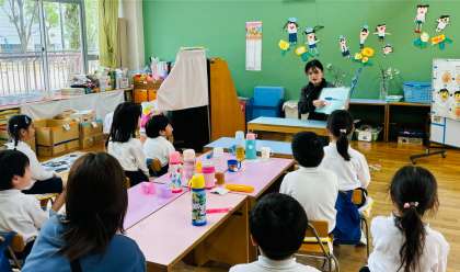 歯磨きの保健指導では、子どもたちが関心をもてるような視覚的教材を作成し、磨く時の歯ブラシの向きを意識できるよう知らせていました。子どもたちは、興味をもって話を聞き、教えてもらったことを意識して磨こうとする姿が見られました。