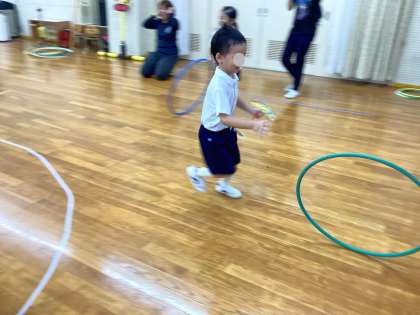 転がしたり、足に挟んだり、くぐったり、友達とキャッチし合ったり…