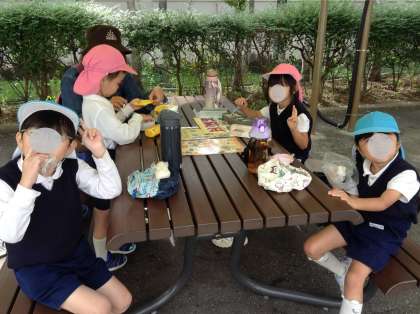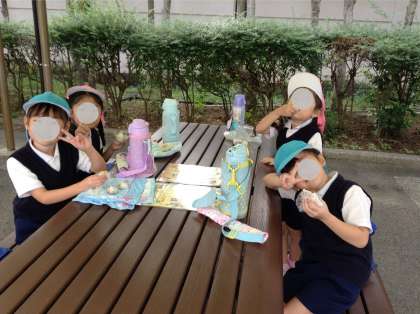 今日は園外保育でした。沢山歩いた後のおにぎりは、とっても美味しかったですね。