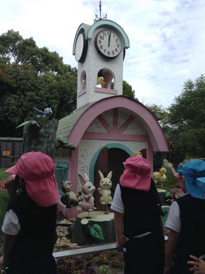 食べ終わった後、12時になり、時計台の下で白雪姫にも会えました。