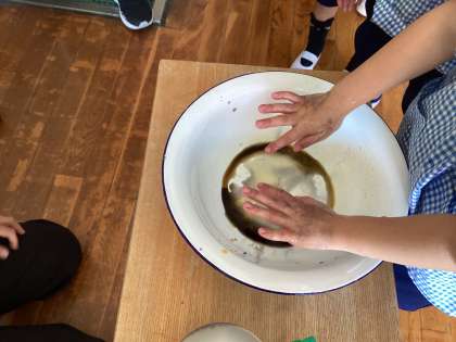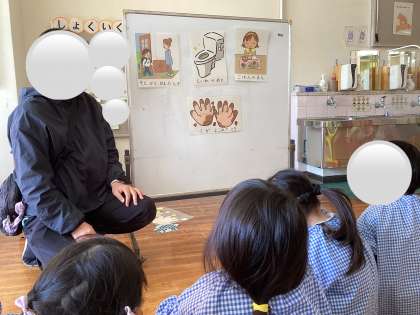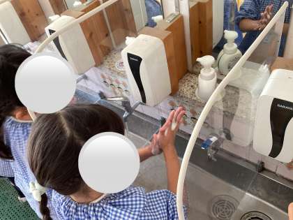 その後、どんな洗い方をしたら綺麗になるかを子どもたちなりに考えながら手を洗っていました。