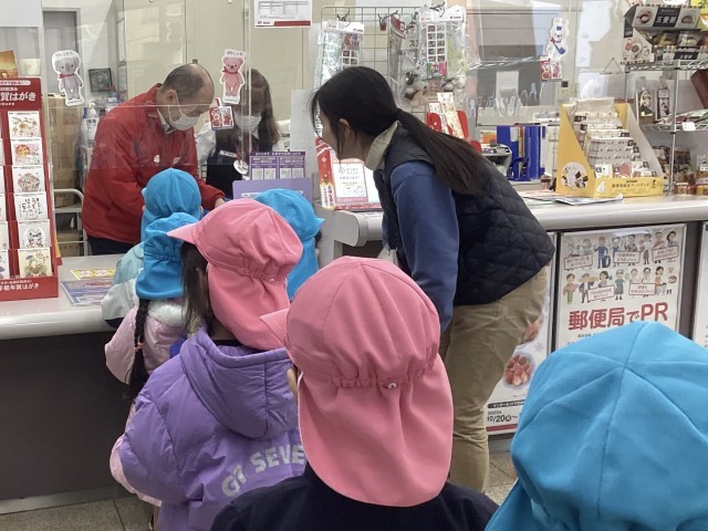 一人一枚ずつ、局長さんに年賀状を手渡しして、お正月に配達してもらえるようお願いしてきました。