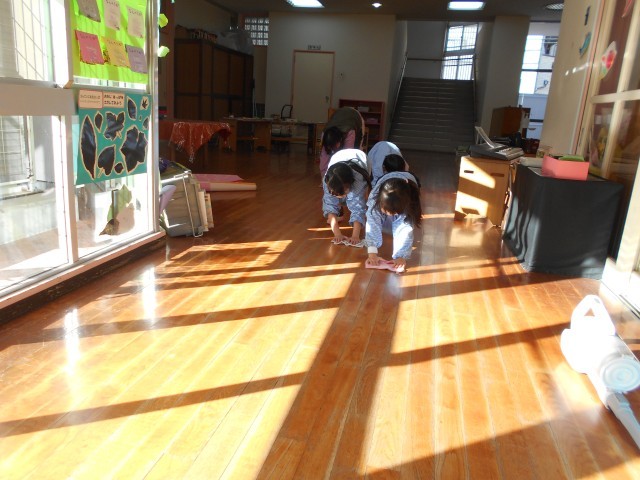 拭き上げた後に床を触ってみると、キュッキュッ♪といい音がして、「綺麗になった!」と実感する子どもたちでした。