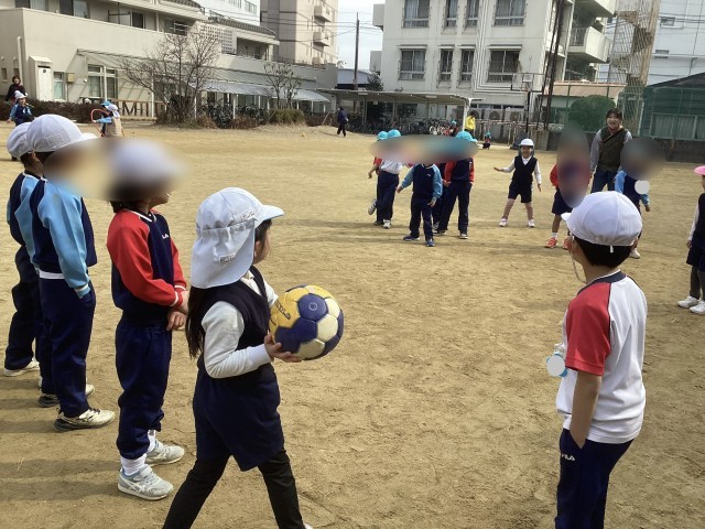 今日は広い校庭で一緒に「ネコねずみ鬼ごっこ」や「大縄跳び」や「中あて」をして遊びました。