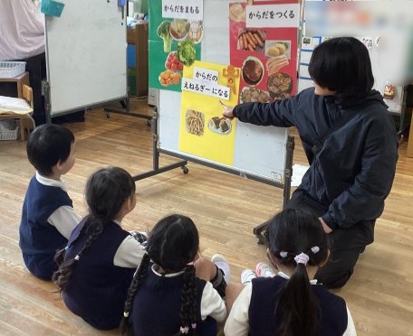 2月保健指導 公開日 2026/02/17 更新日 2026/02/17 幼稚園日記 2月16日(月)今日は3色栄養の話をしました。子どもたちは「今日のお弁当に、3色入ってる!」と言ったり、「野菜が緑かな?」など考えたりしながら話を聞いていました。最後は食べ物かるたをしてみんなで遊びました。遊びながら学ぶ大切さを改めて感じました。 いいね(0) 保健指導 食育指導