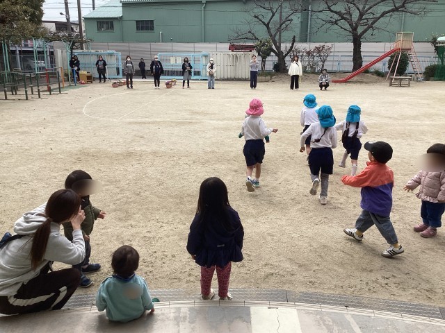 笑顔いっぱいで走る小さいお友達の姿に「ニコニコだったね」と、幼稚園の子どもたちも嬉しくなっていました♪