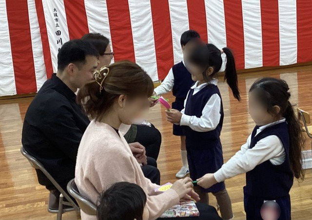 はな組だけで歌を歌ったり、お家の人に感謝の気持ちを伝えたりして、3学期の終業式を行いました。