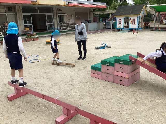 年長児は、いろいろなことに挑戦してみようと自分たちで場を用意して遊び始めました。
