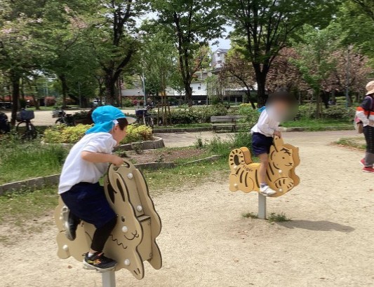 園にはない遊具で、しっかり体を動かして元気に帰って来ることができました。