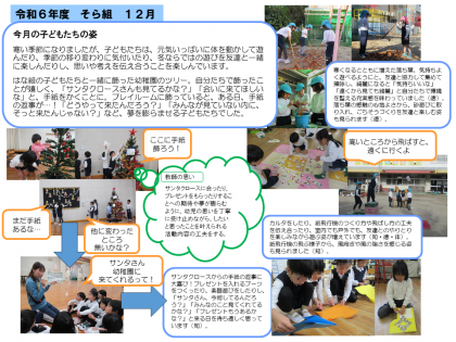 本格的に寒くなり、身近な自然の変化を感じとったり、サンタクロースと手紙のやりとり...