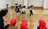 5歳児が園庭で、あさっての保育参観で発表する遊びに取り組んでいました。今日は4歳...