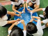 1学期最後のふれあい遊びデーは、水風船やスーパーボールすくい、シャボン玉、水でっ...