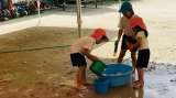 1学期に色水づくりや水遊びに使った物の手入れやプール遊びの片付けをしました。きれ...
