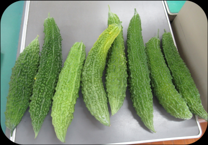 保育室前のテラスで栽培しているゴーヤが昨日は1つ、今日は2つ収穫できました。大き...