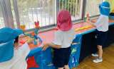 今日は異年齢合同で体操をした後、1学期につくった異年齢チームのお友達の確認をしま...