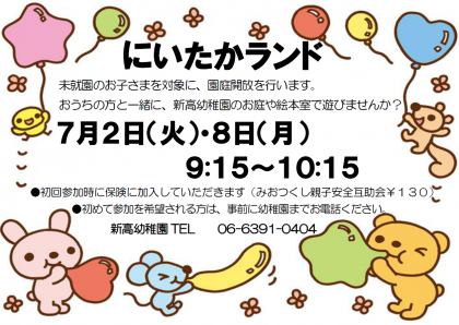 未就園児対象の園庭開放『にいたかランド』を行います。
