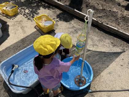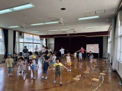 今日は、5、6、7月の誕生会をしました。前回欠席していたり、誕生月が1人だったりしたので、6月に合同で開催しました。誕生児はもちろん、集まった他の幼児も、友達の誕生日を大切に思って、心からお祝いしていました。来週のプール開きを楽しみに、ペンギンのプール体操をしました。誕生会のあとは園庭で水に親しんで遊びました。明日もよい天気になりそうです。5歳児ほし組がプールの掃除を予定しています。事業担当主事さんが一足先に、下洗いをしたときに見つけた虫を持ってきてくれました。調べてみると「オケラ」でした。自然環境に恵まれていることを改めて実感します。