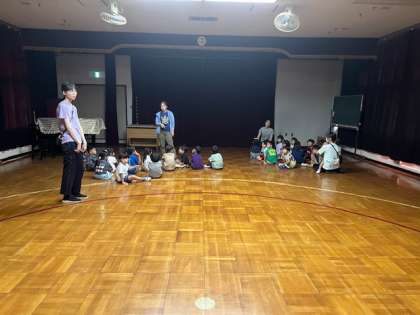 今日は、園庭に不審者が侵入したという想定で、子どもたちが、遊びを中断してリズム室に移動、指示があるまで静かに待機するという訓練をしました。ふざけたりパニックになったりすることなく過ごしました。どこに子どもがいるのか見つけられないくらいとても静かに過ごすことができました。