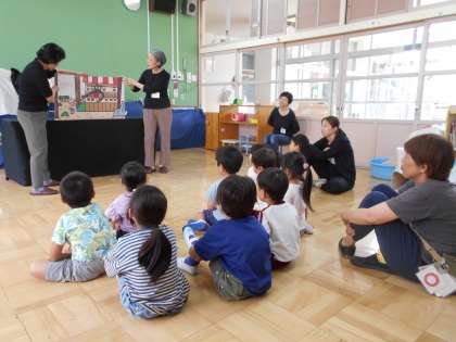 絵本の会 公開日 2024/08/29 更新日 2024/08/29 できごと 淀川図書館の方による、絵本の読み聞かせがありました。 おはなし組木や紙芝居、大型絵本など様々なお話を聞かせていただき ました。 子どもたちは楽しそうに聞いていて、次はどんなお話だろうと ワクワクしている様子も見られ、お話の世界を楽しんでいました。 いいね(0)