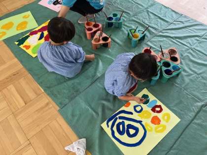 運動会を終えて、登園してきた子どもたちは、自信に満ち溢れた表情をしていました。よほど運動会が楽しかったのか、5歳児ほし組が自分たちで準備をして、リレーやバルーンで遊び始めました。リレーは、3回戦続けて全力疾走!バルーンは、先生が言っていた合図や歌を口ずさみながら自分たちでタイミングを合わせて見事に膨らませていました。4歳児も憧れのまなざしでした。早速、運動会で心に残った場面をかく姿も見られました。「運動会でおしまい」ではなく、そこでの経験がまた日々の生活を潤します。