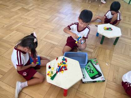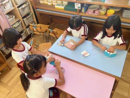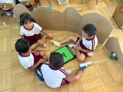 運動会を通して、友達と相談したり考えを出し合ったりしてきた子どもたちは、遊びの中でも互いの言葉に耳を傾ける姿が増えました。自分たちで遊び方やルールを決めて進めることで、一層楽しく感じられるようです。19名のクラスですがチャレンジやバルーンなどで励まし合い、協力し合った経験から、仲間関係が広がったように感じます。