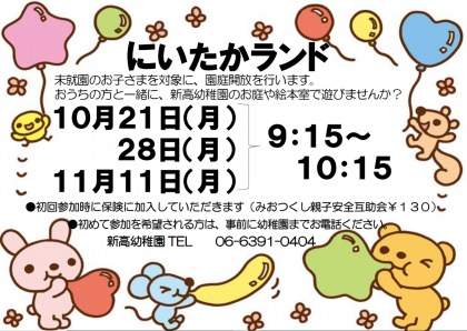 未就園児対象の園庭開放『にいたかランド』を行います。