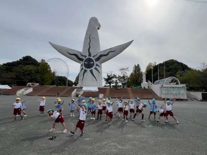 太陽の塔の裏で「この地球のつづきを」を踊って大喜び!2025!!未来見に行こう!の声が響きました。