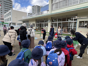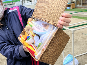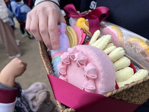 保護者有志のハンドメイドクラブ「クラブママ」のみなさんから、手作りのフェルトの「ままごとセット」をいただきました。つくって遊べる食べ物のセットに子どもたちは大喜び。温かい心のこもった贈り物をありがとうございました。