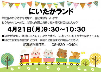 新高幼稚園では、未就園児の園庭開放『にいたかランド』を行っています。