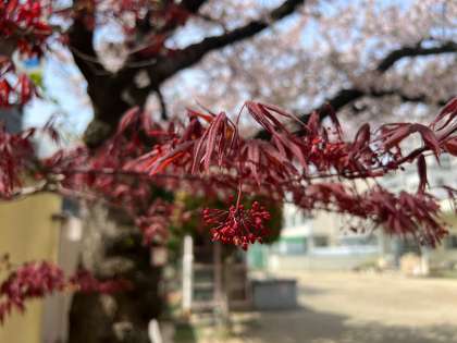 満開の桜のとなりで 公開日 2025/04/08 更新日 2025/04/08 できごと 桜が美しく咲き誇る、そのとなりで、紅葉が花を咲かせています。 小さなかわいい花です。 是非探してみてください。 いいね(0)