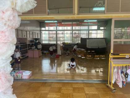 登園して30分が経ちました。泣いている子どもはなく、かかわり合って遊んでいます。好きな遊びを見つけられるってステキ!
