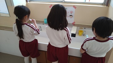 昨年度に引き続き、5歳児ほし組が弁当後の歯みがきを頑張っています。