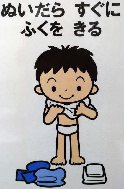 また、これからの季節、水遊びやプール遊びで服や水着に着替える機会が多くなるので、服や水着に着替える時の約束(裸のまま活動せず脱いだらすぐに服を着る、人の着替えに注目しないこと)についても知らせました。