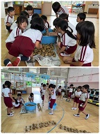 「どうやって数えようか」輪になって、アイデアを出し合っています。