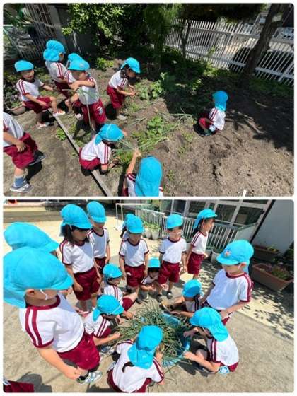 タマネギを引き抜くと、自分たちの手もタマネギの香りに。