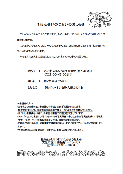 7月18日(金)14:00から、令和6年度に修了した1年生を対象に『1年生の集い』を行います。
