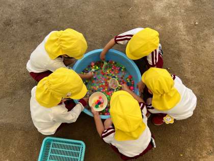 つめたくて気持ちいい! 公開日 2022/06/02 更新日 2022/06/02 できごと スーパーボールすくいをして遊んでいます。気温が上がってきたので、テントの日陰でしています。冷たい水が気持ちいい!ボウルいっぱいにすくっては、水に返し、何度も繰り返し楽しんでいます。 いいね(0)