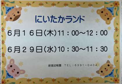 園庭開放 にいたかランド 公開日 2022/06/09 更新日 2022/06/09 お知らせ 本日、第1回目のにいたかランドを実施しました。 まだ、園児とのふれあいは見合わせていますが、園庭からテラスごしに保育の様子を感じていただきながら、初夏の陽射しのもと、水をつかった遊びも楽しみました。 いいね(0)