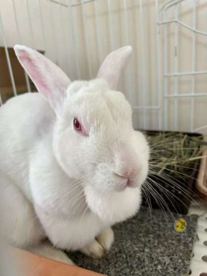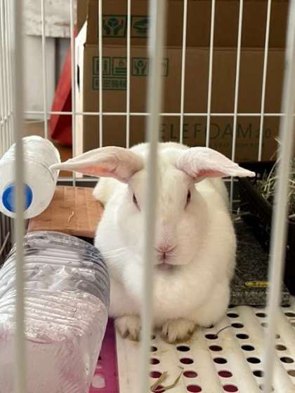 あまりの暑さに、ミルクちゃんが園庭のお家から玄関先に引っ越してきました。うさぎは暑さにも寒さにも弱い生き物です。