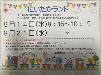 未就園児を対象に園庭開放『にいたかランド』を行います。