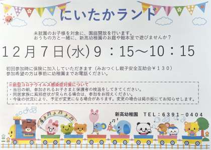 未就園児を対象に園庭開放『にいたかランド』を行います。