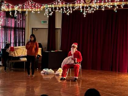 サンタさん来るかなぁ?体操をしたり、スライドでお話を聞いたり、2学期を振り返って幼稚園での楽しかったことを話したりしていると。
