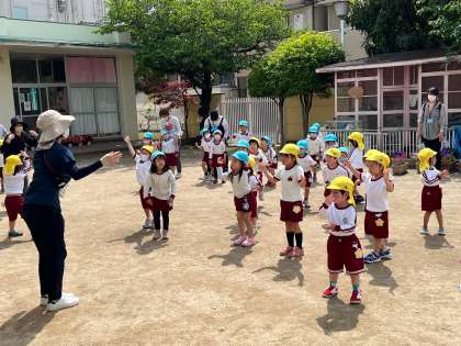 新高幼稚園は全園児37名2クラスのアットホームな幼稚園です。新入園児には、他の幼稚園や保育施設での集団で遊ぶ経験がある子ども、兄姉やその友達と多様な遊びの経験がある子ども、保護者の方からはじめて離れて幼稚園に来た子どもと、その生活経験は様々です。どの子にも自分のペースで幼稚園生活に慣れ親しんでほしいと思い、好きな遊びのときはもちろん、その他にも4歳児と5歳児が一緒に活動する時間を意図的に増やしています。5歳児は自分より年少の友達への気持ち、4歳児は年長の友達への憧れの気持ちをもって交流しています。