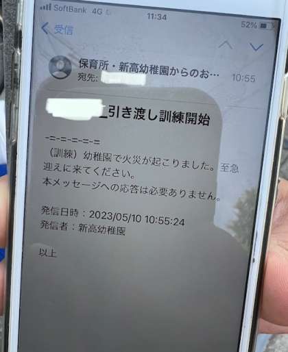 保護者と避難訓練 公開日 2023/05/10 更新日 2023/05/10 できごと 今日は、非常時に、保護者への引き渡しを行う引き渡し訓練を行いました。保護者の方には幼稚園からのメールを受け取ってから家を出ていただきました。日頃は自転車を利用している方も、徒歩で30分以上かけて駆けつけてくださいました。 いいね(0)